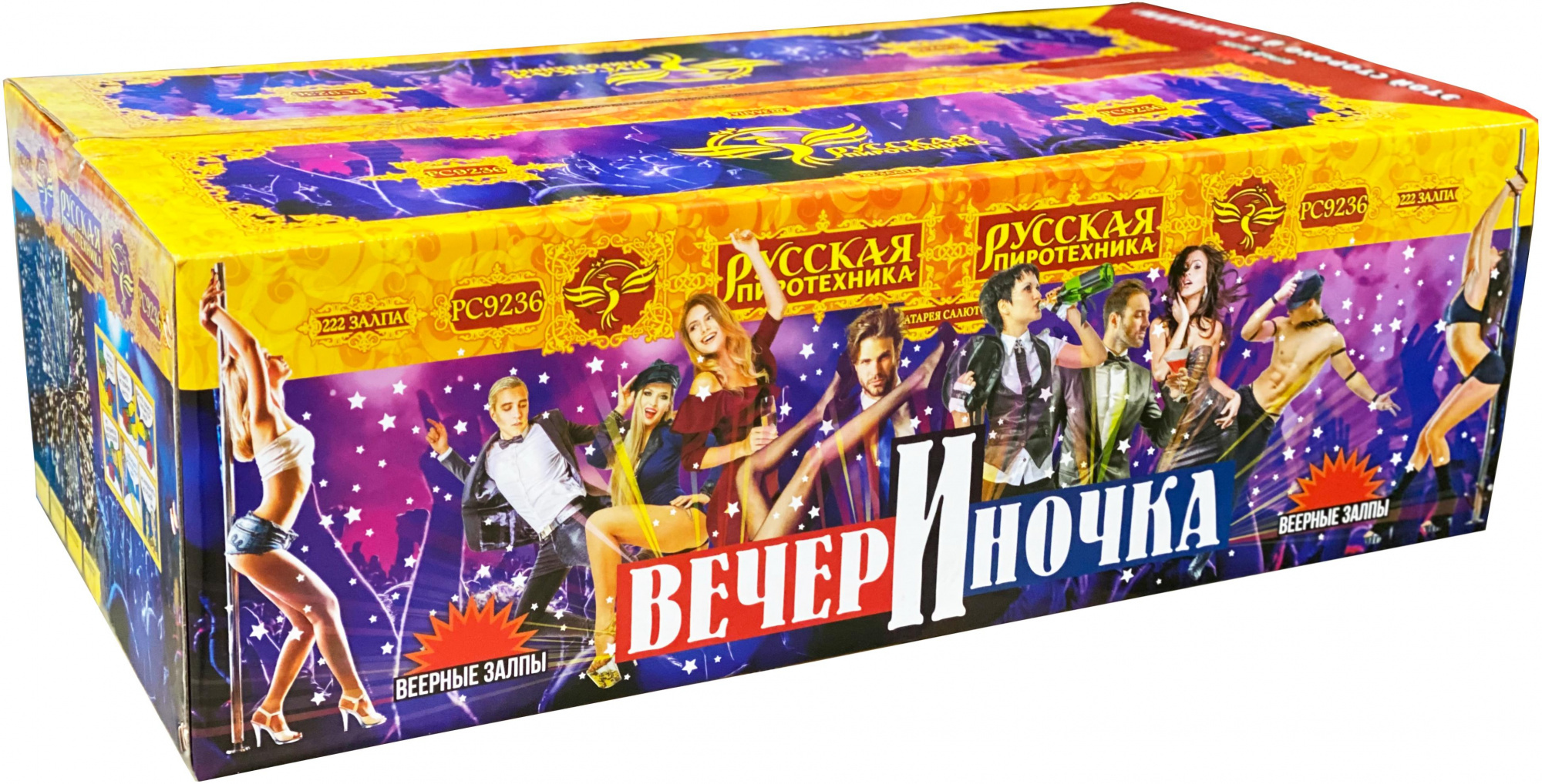 9. Серебряных форсов с фиолетовыми и зелёными огнями на концах, синих, красных и белых мерцающих огней.